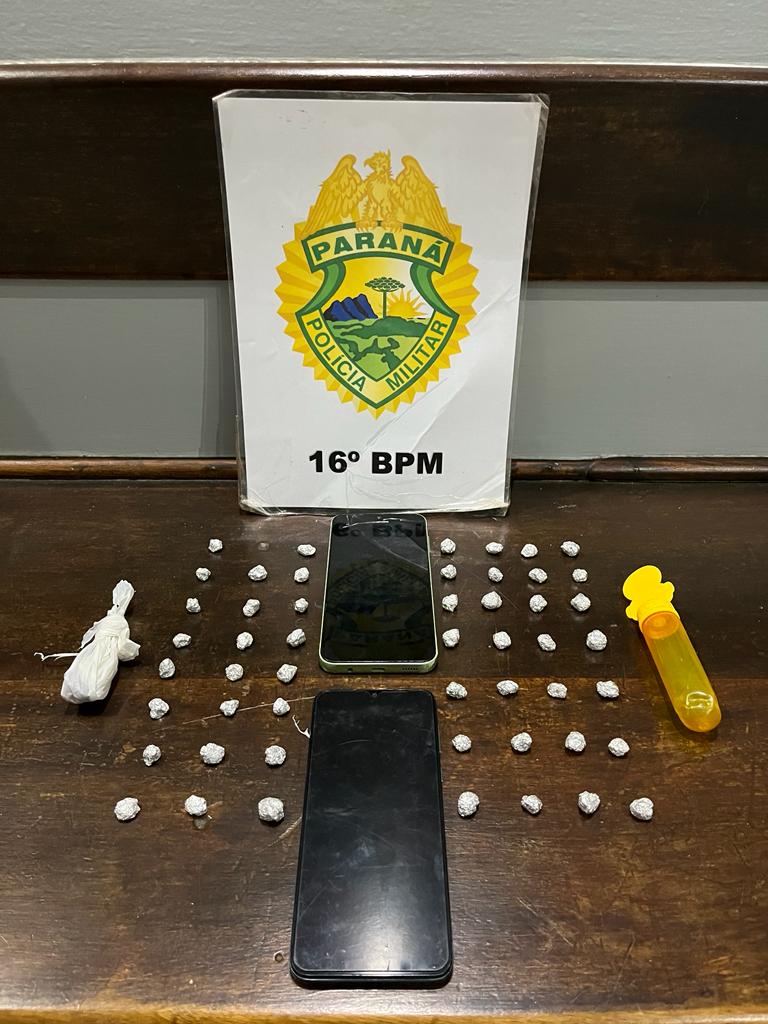 A jovem de 17 anos, identificada, foi abordada com um celular, e ao verificar a sacola que havia descartado, foram encontrados 23 envólucros de substância análoga a crack, totalizando 6,3 gramas.