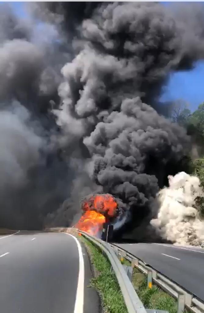 Tibagi (PR) – Um trágico acidente ocorreu no fim da manhã desta segunda-feira (21) na BR-376, na área conhecida como ‘Alto do Amparo’, próximo a Tibagi, na região dos Campos Gerais do Paraná. De acordo com informações preliminares, um engavetamento envolvendo três caminhões resultou em um incêndio de grandes proporções, deixando a rodovia interditada.