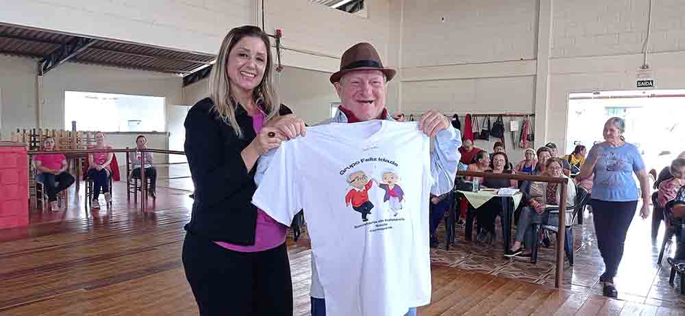 A entrega das camisetas aconteceu no Clube do Vovô, no início da tarde, e contou com a presença de um grupo animado de idosos. Ao receberem o presente personalizado, a expressão de felicidade estava estampada no rosto de todos os beneficiados. As camisetas, além de um gesto de carinho, promovem um senso de pertencimento ao grupo, reforçando os laços de amizade e comunidade.
