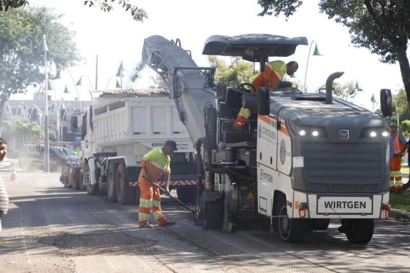 Nesta quinta-feira (16), o trecho entre a rotatória da Avenida Brasil e a Rua São Paulo já está bloqueado para o trânsito devido ao início dos trabalhos de fresamento. A previsão é que o bloqueio seja encerrado no final do dia. Agentes da Transitar estão no local para auxiliar na organização e fluidez do tráfego.