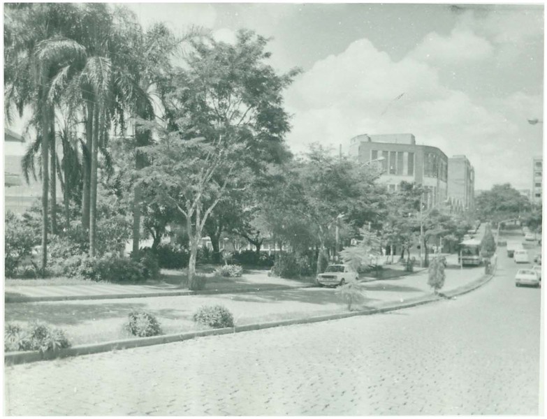 Ao fundo, é possível observar edificações de porte médio, reflexo do crescimento econômico e da urbanização que se intensificavam na cidade ao longo do século XX. Os automóveis estacionados e em circulação ajudam a datar a cena como parte de uma época em que Valinhos começava a consolidar sua vocação urbana, sem perder o caráter interiorano.