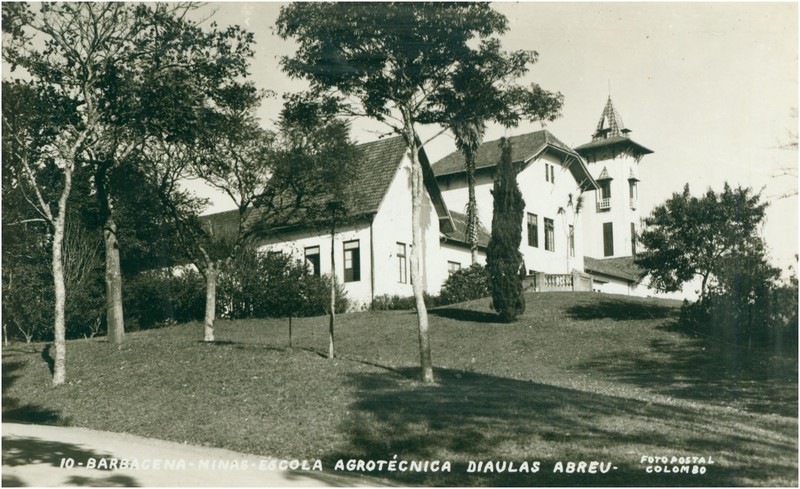 Nesta imagem histórica, vê-se o edifício da antiga Escola Agrotécnica Diaulas Abreu, um dos marcos do ensino agrícola brasileiro. Criada em 1910, pelo decreto nº 8.358 de 9 de novembro, assinado pelo então presidente Nilo Peçanha, a instituição foi originalmente denominada Aprendizado Agrícola de Barbacena, subordinada ao Ministério da Agricultura, Indústria e Comércio.