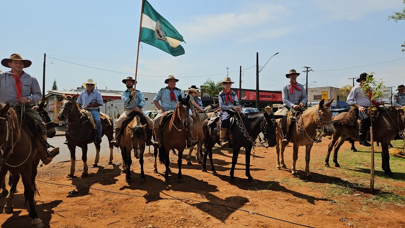As celebrações começaram pela manhã, ao lado da rodoviária, com a tradicional roda de chimarrão. Às 10h, a cavalgada tomou as ruas do município, com a participação de tropeiros do CTG Jeacob Fritz e integrantes do Grupo de Tropeiros da Amizade “Com Pé na Estrada”. O desfile contou ainda com a presença do vice-prefeito Ponciano Abreu, do patrão do CTG, Valde Damiani, e de Arnaldo Ravanello, patrão do grupo de tropeiros, além de outros tradicionalistas que abrilhantaram o ato.