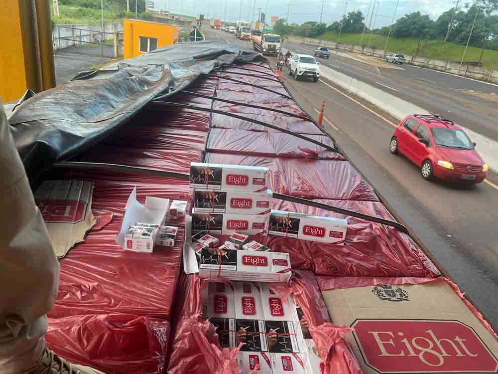 Carreta carregada com 400 mil maços de cigarros contrabandeados é apreendida PRF em Cascavel