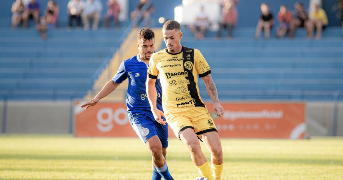 A primeira grande chance foi do Goiatuba. Alex Henrique recebeu na entrada da área e finalizou, mas foi travado pela defesa aurinegra, que rapidamente armou o contra-ataque com Vini Moura. O camisa 8 avançou em velocidade, mas acabou desarmado pela marcação adversária.