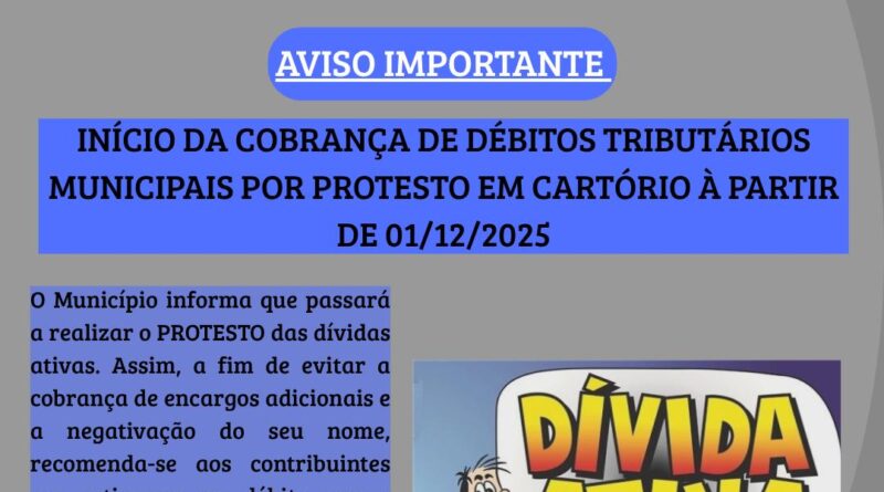 Read MoreA Prefeitura de Cantagalo anunciou o início da cobrança de débitos tributários municipais por meio de protesto extrajudicial em cartório.