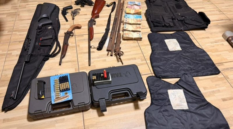 Read MoreOs policiais encontraram uma pistola calibre .38 TPC, um revólver calibre .22, duas garruchas, uma carabina calibre .22 e uma
