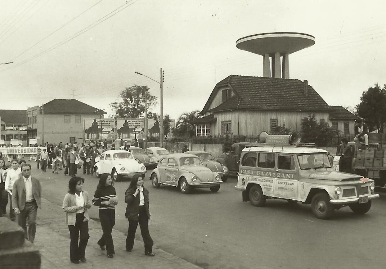 O registro é de um desfile de 7 de setembro, na região central da cidade, em algum momento da década de 1970.