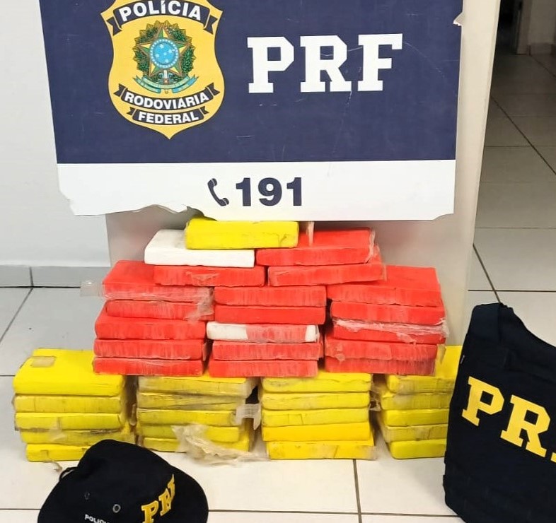Entorpecente estava escondido em duas malas no compartimento de carga do veículo. Um homem foi preso