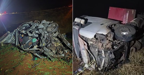 Vitorino (PR) – Um trágico acidente foi registrado na madrugada desta sexta-feira (18), por volta das 00h45, na rodovia PRC-280, em Vitorino, no Sudoeste do Paraná. A colisão frontal envolveu um caminhão bitrem carregado com milho, com placas de São Lourenço do Oeste (SC), e um Fiat Idea, com placas de Blumenau (SC), que resultou na morte de cinco pessoas da mesma família.