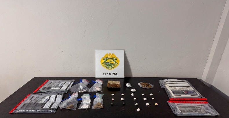 Durante a abordagem, o indivíduo foi localizado em um quarto da casa na companhia de uma adolescente de 14 anos. No ambiente, os policiais encontraram duas balanças de precisão e porções de maconha e cocaína.