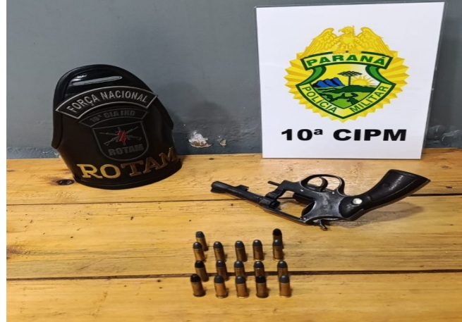 Revólver calibre .38 e 17 munições foram apreendidos durante patrulhamento da ROTAM na noite de segunda-feira