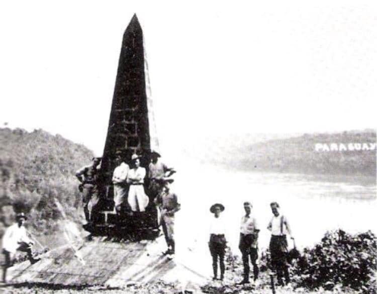 A bela imagem mostra trabalhadores posando para foto no recém-construído Marco das 3 Fronteiras, em Foz do Iguaçu, em 1903.