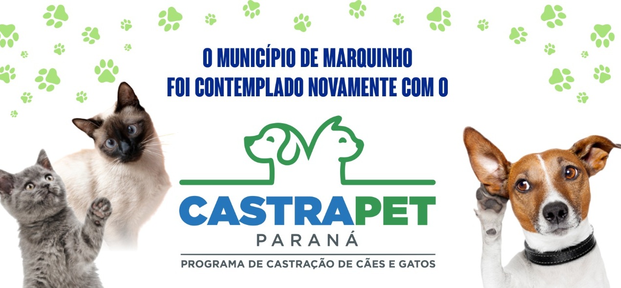 A Prefeitura de Marquinho anunciou que o município foi novamente contemplado com o programa Castrapet Paraná, iniciativa do Governo do Estado que promove a castração gratuita de cães e gatos, machos e fêmeas, com o objetivo de controlar a população animal e fortalecer ações de saúde pública.