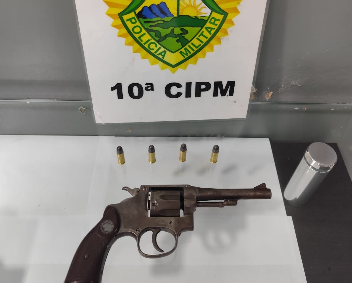 Durante a revista pessoal, foi localizado na cintura do condutor um revólver calibre .32, municiado com quatro cartuchos. Segundo a PM, foi necessário o uso de algemas devido ao risco de fuga, já que a abordagem ocorreu em via de tráfego.