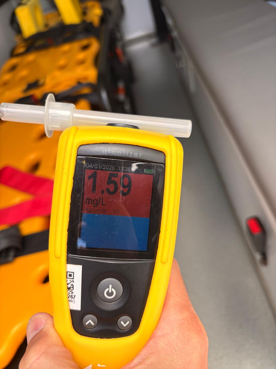 Teste do etilômetro apontou 1,59 mg/L; condutor admitiu consumo de conhaque antes de dirigir