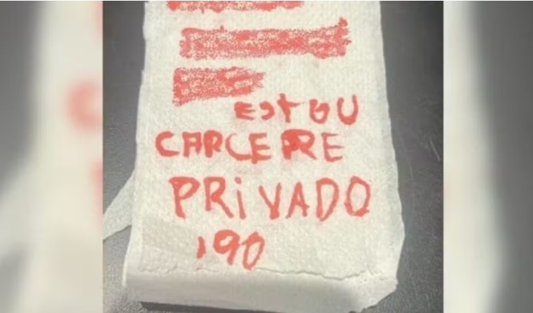 Uma mulher conseguiu escapar de um ciclo de violência doméstica ao pedir socorro de forma desesperada, escrevendo um bilhete em um pedaço de papel higiênico com a mensagem: “Estou em cárcere privado, 190”. O pedido foi encontrado por um funcionário de uma loja de conveniência em Gaspar, no Vale do Itajaí (SC), na noite de sexta-feira (4).