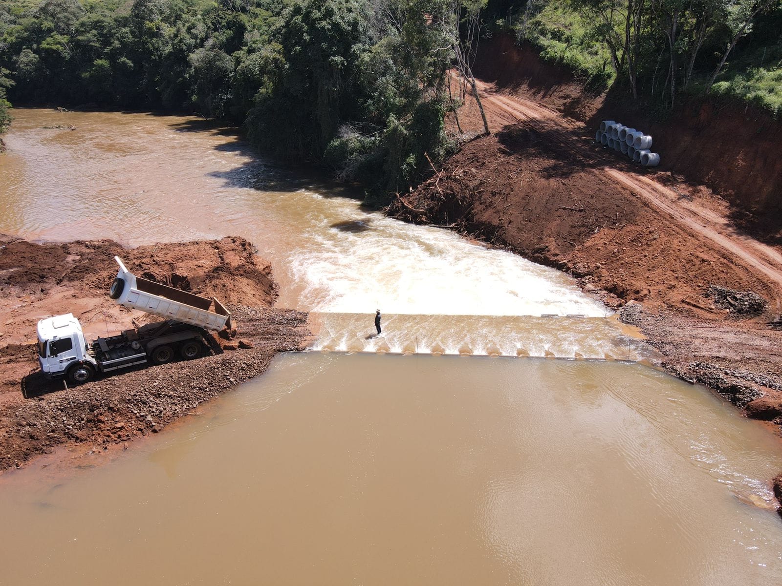 A “ponte molhada” recebeu esse nome porque a construção é feita sobre as águas. A obra tem recursos de R$ 500 mil oriundos de emenda parlamentar do deputado federal Toninho Wandscheer com contrapartida do Município de Cantagalo.