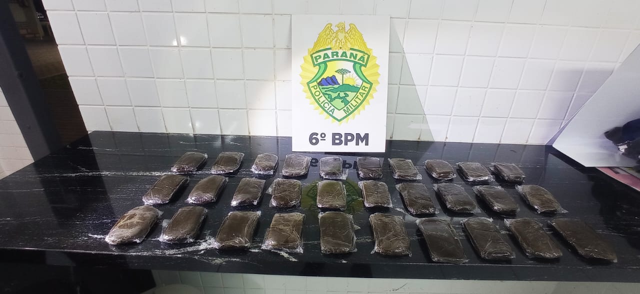 O homem, morador de Cascavel, ocupava a poltrona número 38 do ônibus quando foi abordado pelos policiais. Durante a revista, os cães farejadores indicaram a presença de entorpecentes em uma mochila que pertencia ao suspeito. Ao abrir a mochila, os policiais encontraram 30 unidades de haxixe, totalizando 3,030 kg.