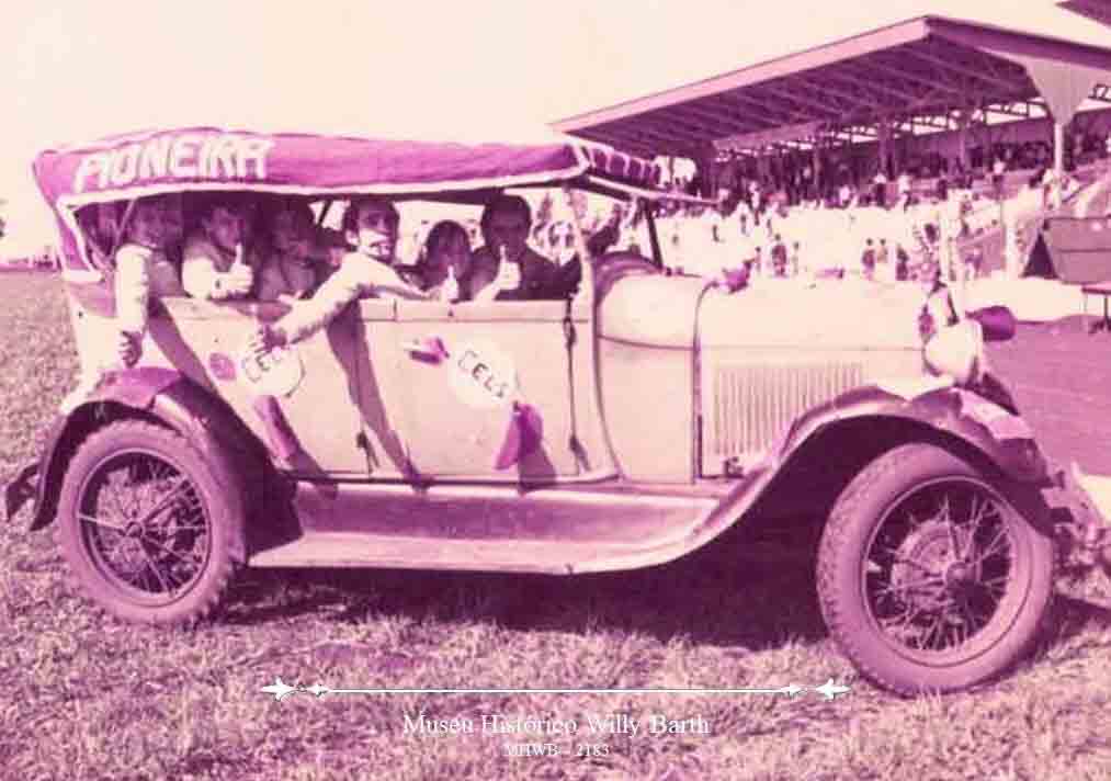Ela retrata o conjunto musical “Os Ritmistas” no Estádio 14 de Dezembro, na rua Barão do Rio Branco-Toledo, em 1967, em um belo fordinho.