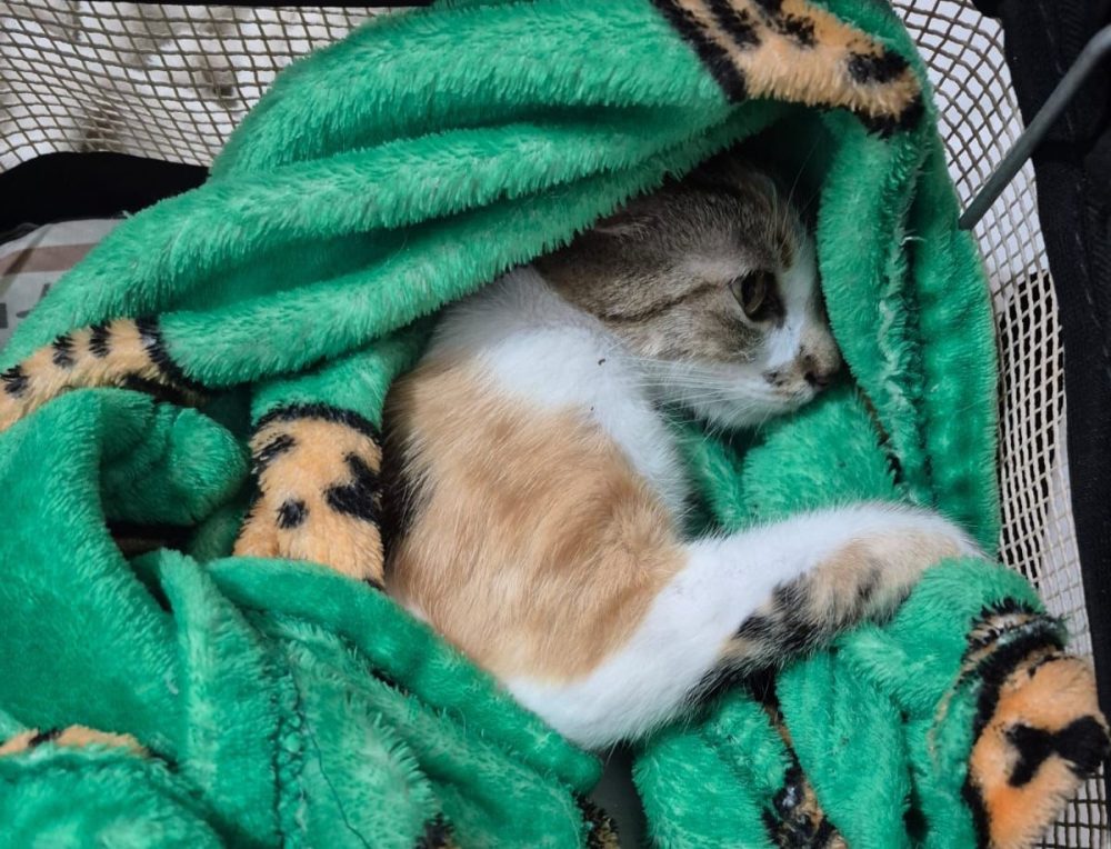 A gata sofreu traumatismo crânio-encefálico, contusão pulmonar e hemorragia severa na região da bexiga. Ela sobreviveu à queda e foi imediatamente levada para atendimento veterinário na ONG Força Animal.