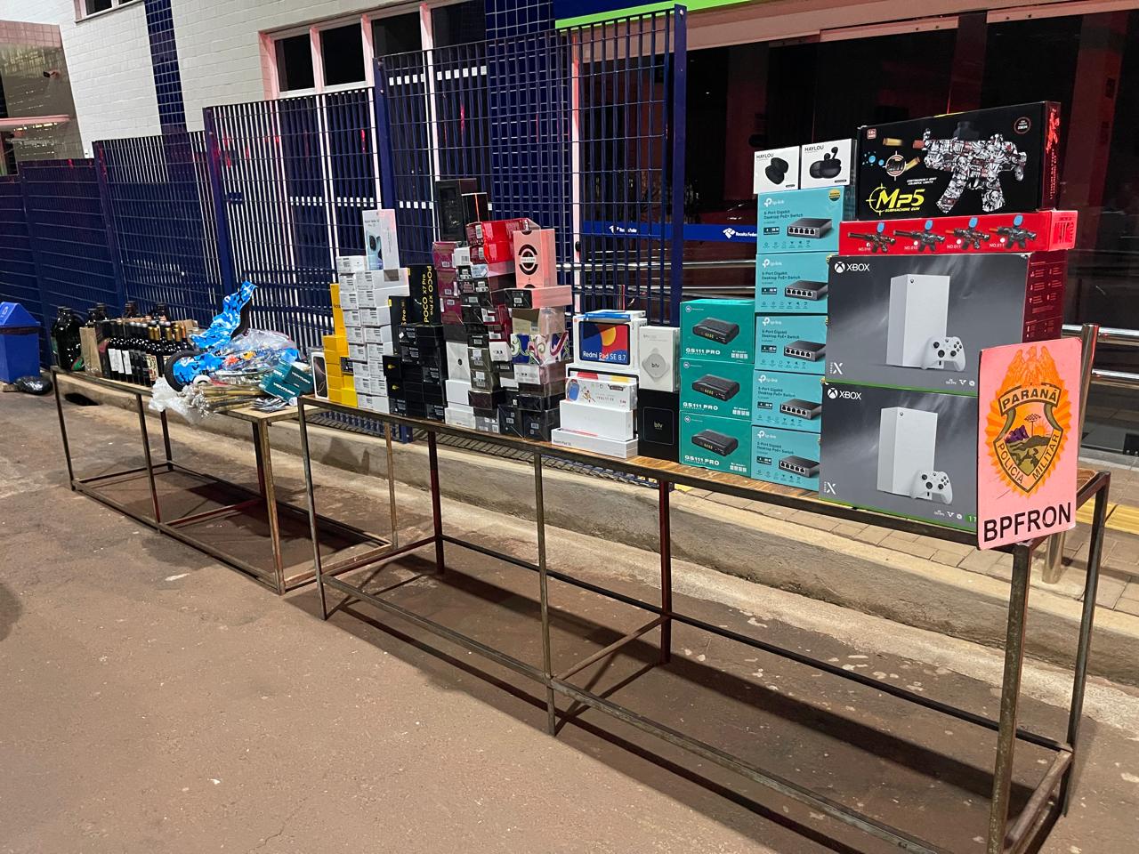 Na manhã desta quinta-feira (23), durante patrulhamento de rotina, a equipe do BPFRON abordou um Fiat/Siena, em Foz do Iguaçu. Após a abordagem, os policiais realizaram uma busca no veículo e encontraram uma grande quantidade de produtos contrabandeados, como celulares, fones de ouvido, itens de perfumaria, bebidas, artigos de pesca e outros.