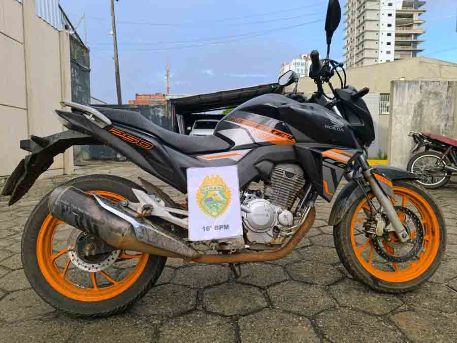 A situação levantou suspeitas, e ao realizar uma inspeção mais detalhada, os policiais constataram sinais evidentes de adulteração no chassi da motocicleta, incluindo lixamento, remarcação e pintura.