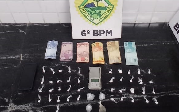Flagrante ocorreu no bairro Interlagos; cocaína, maconha, dinheiro e balança de precisão foram apreendidos