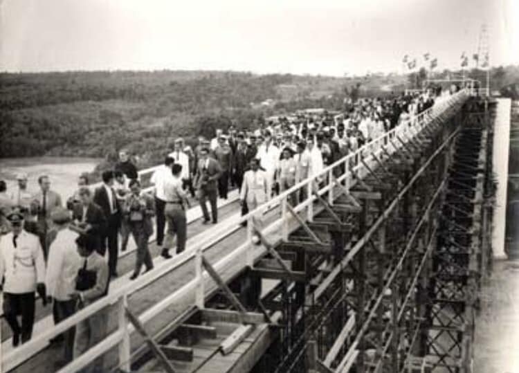 PARANÁ HISTÓRICO Ponte da Amizade ainda em construção 21/02/2024 Da redação Essa bela imagem mostra a Ponte da Amizade, que liga o Brasil ao Paraguai, ainda em construção. Mesmo inacabada, uma multidão atravessa a ponte. A foto foi publicada originalmente na página Foz do Iguaçu Antiga.