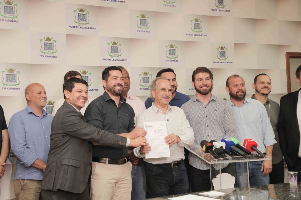 O presidente da Câmara de Vereadores, Tiago Almeida, reforça o trabalho integrado do Executivo e do Legislativo em prol da comunidade cascavelense. “É um momento ímpar para a população de Cascavel. Nós sabemos da sensibilidade que o prefeito Renato tem com os moradores de Cascavel, e é isso que nós precisamos: fazer políticas públicas. E, agora, hoje, protocolamos aqui, já vamos fazer a leitura hoje mesmo na sessão e depois passar em todas as comissões. Vamos dar agilidade para o quanto antes já estar na mão do prefeito, para já liberar para passar todas as licitações. Essa união que nós precisamos: Executivo e Legislativo trabalhando pela população de Cascavel”, frisa.