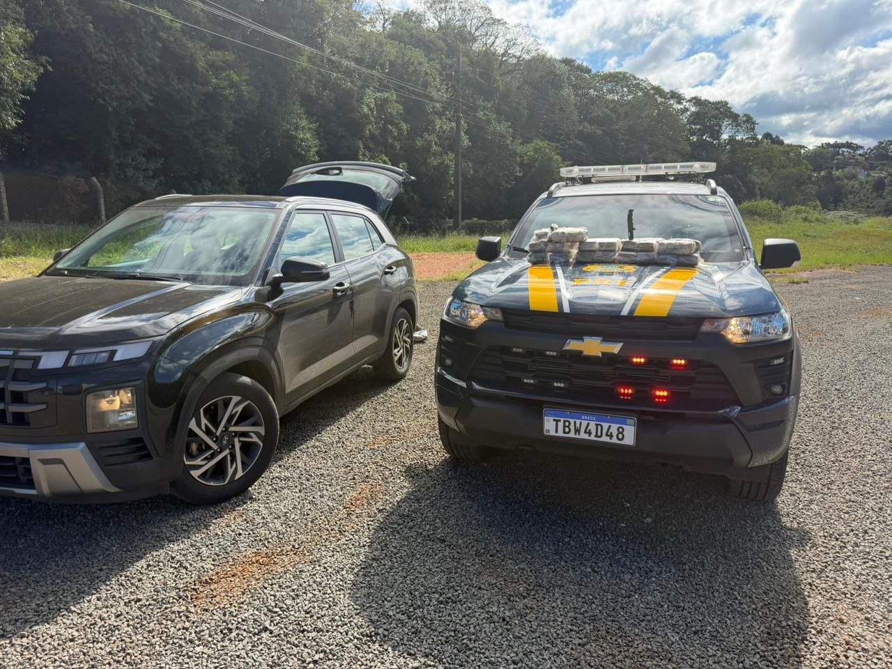 Os policiais realizavam patrulhamento ostensivo quando deram ordem de parada para o condutor de um veículo Hyundai Creta. Durante a fiscalização, o condutor apresentou comportamento nervoso e forneceu informações contraditórias sobre sua identificação e destino.