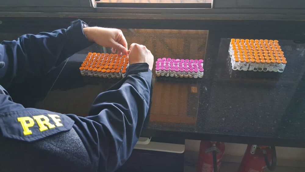 O automóvel era ocupado por um homem de 36 anos e uma mulher de 37 anos. Durante a vistoria, os agentes localizaram os frascos escondidos no filtro de ar do motor, em um compartimento aquecido — condição inadequada para o transporte desse tipo de substância, que deve ser mantida em ambiente resfriado.
