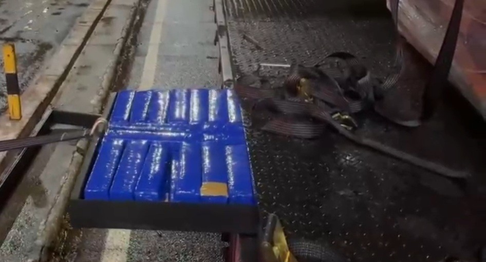 Após fiscalização minuciosa, a equipe identificou sinais de manipulação no assoalho do compartimento de carga. Em seguida, foi localizado um compartimento oculto, onde estavam escondidos diversos tabletes de maconha prensada.
