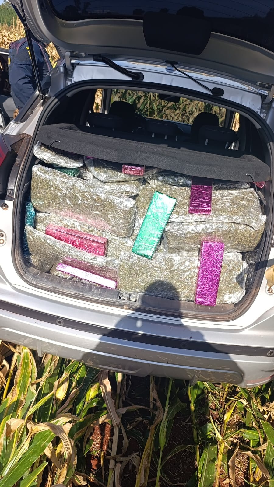 O Nissan Kicks, que estava com seu interior repleto da droga, estava com placas clonadas e com os sinais identificadores adulterados.