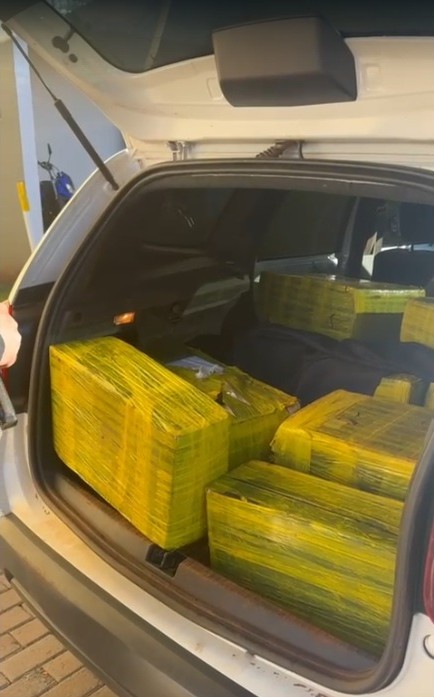 A droga foi encontrada no interior de um veículo Renault Duster, de cor branca, por volta das 6h50.