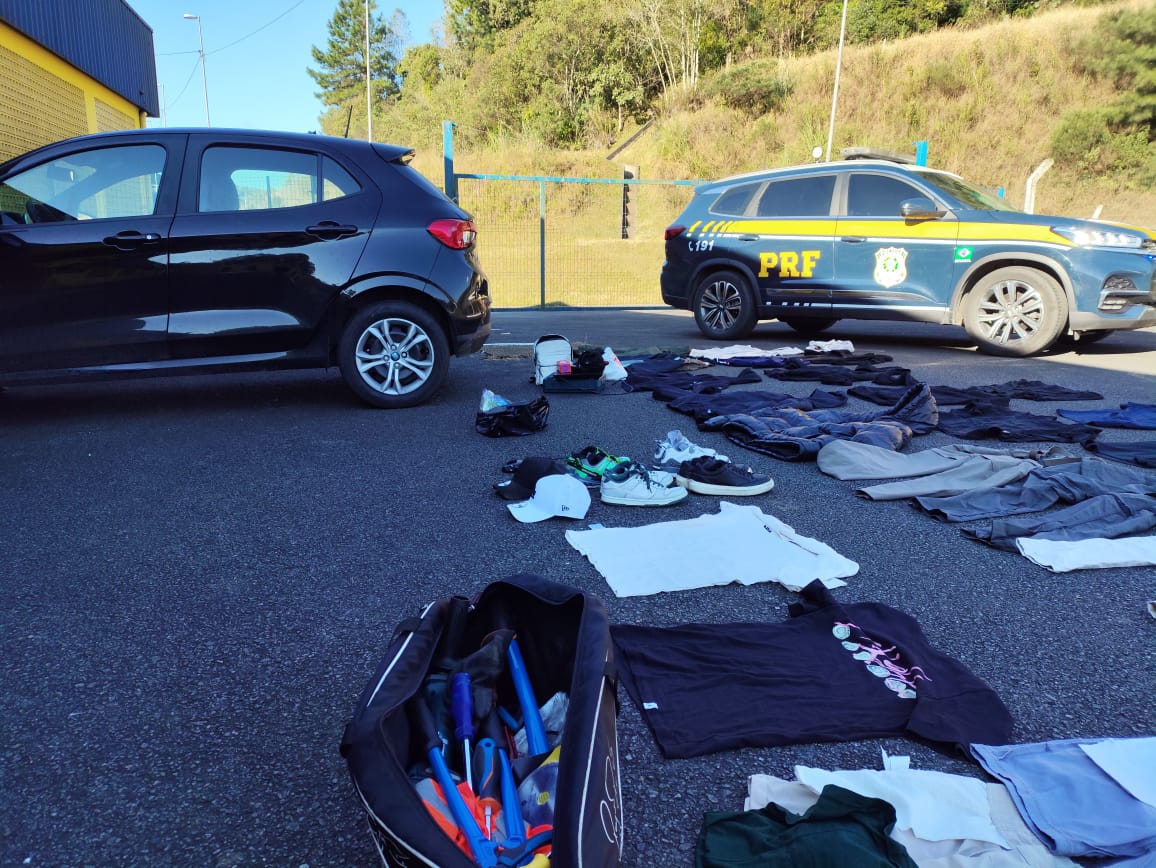 Após o crime ocorrido pela manhã em Joinville, a PRF recebeu informações sobre as características do veículo suspeito envolvido no furto. Equipes da corporação localizaram o automóvel e realizaram a abordagem, encontrando no interior do carro parte das mercadorias subtraídas, além de ferramentas utilizadas na prática criminosa.