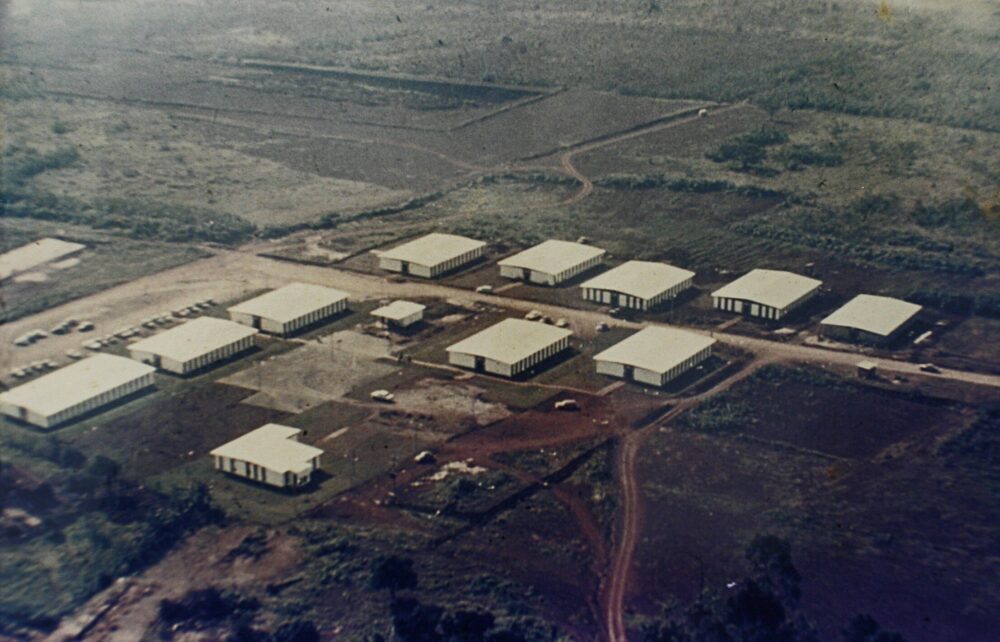 Na imagem de 1973, vemos algumas daquelas primeiras estruturas que deveriam ser provisórias, mas que permanecem ainda hoje utilizadas pelo campus-sede da universidade.