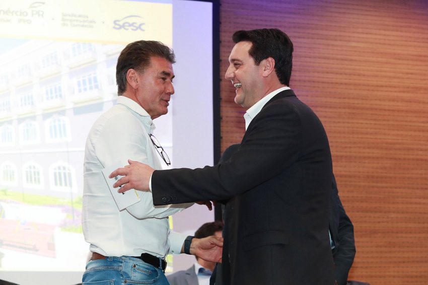 Prefeito Paranhos e goverador Ratinho Jr na inauguração do Hotel Sesc – Foto: Silvia Soluszynski