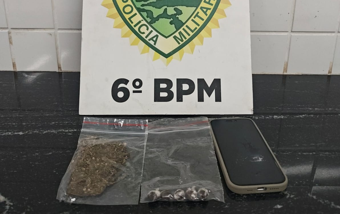Ao perceber a presença da equipe, o condutor apresentou comportamento suspeito e tentou evitar a abordagem. Durante a revista pessoal, os policiais encontraram 23,64 gramas de substância análoga à maconha, já fracionada e pronta para comercialização. Em busca no veículo, foram localizadas ainda cinco porções de substância análoga a haxixe, totalizando 6,3 gramas.
